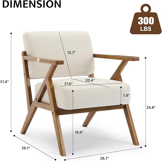 - DURABLE CONSTRUCTION: Crafted from premium wood, the frame ensures the accent chair with arms' longevity. The cushions are made of high-density sponge, soft and comfy. Besides, the linen cover features a gentle texture. Weight Capacity: 300 lbs