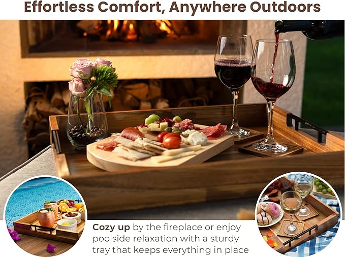 Acacia Wooden Ottoman Tray for Living Room – 21" Large Coffee Table Serving Tray with Handles & 6 Coasters Set, Perfect for Food, Drinks, Kitchen, and Home Decor