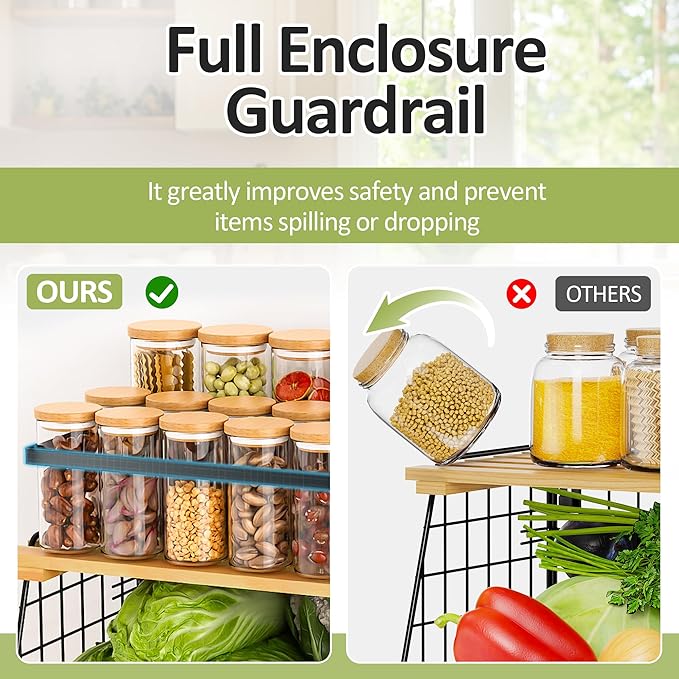 - STURDY, STYLISH & BUILT TO LAST: Made from thick, rust-resistant steel, this magnetic organizer basket features a heavy-duty frame that stays stable and wonβt bend, break, even when fully loaded. The ventilated base keeps fruits and veggies fresh, while the wooden lid adds warmth and style. Guardrails and smooth edges ensure safe, spill-free storage.