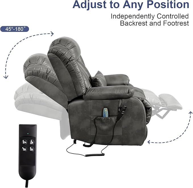 - [Adjustable to Any Position] The power lift recliner can be adjusted to any angle you need (45°-180°) to meet your different needs, such as reading, watching TV, sleeping or getting up and leaving. Our lift chair is equipped with a lift remote control, avoiding the problem of not being able to reach the lift buttons on the armrests when reclining.