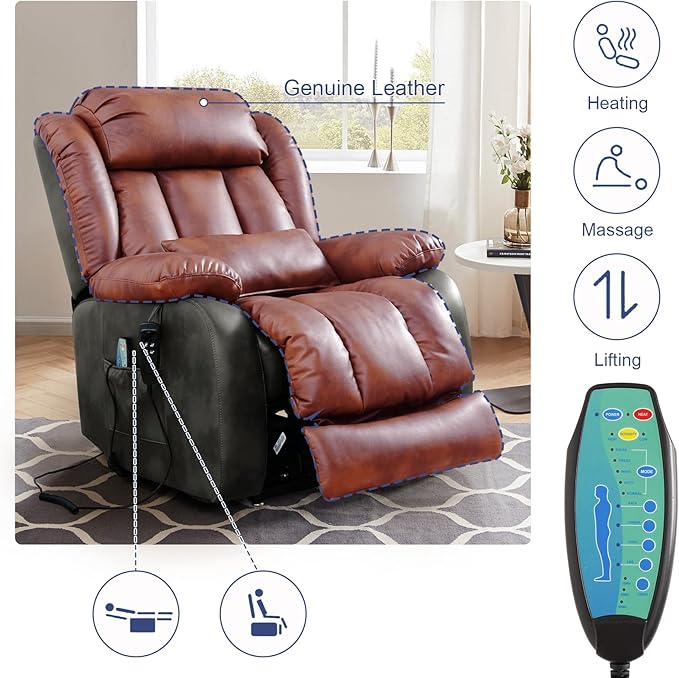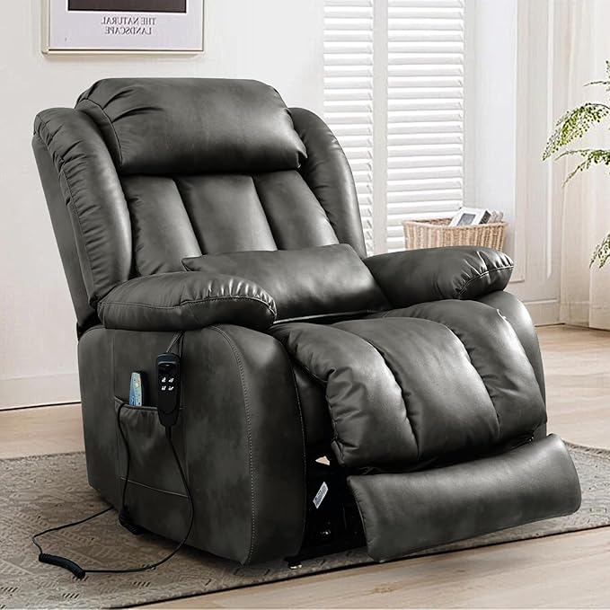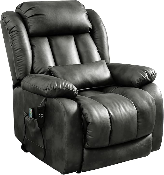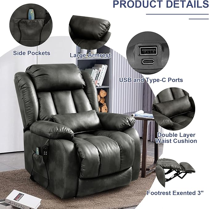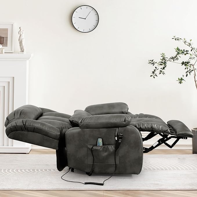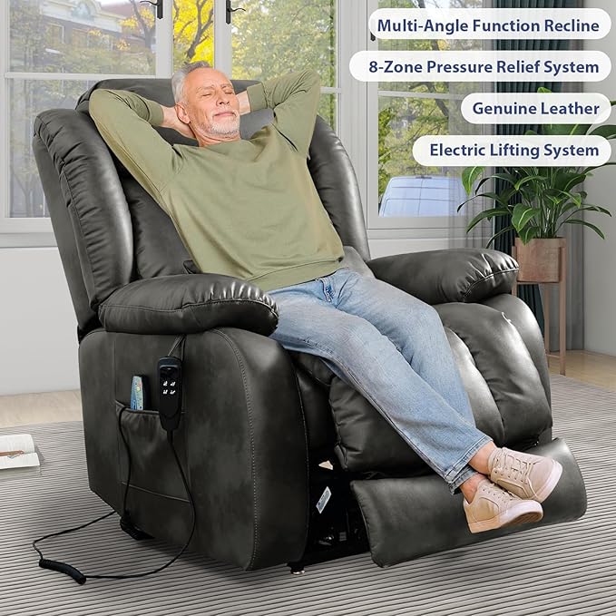 - [Upgraded Massage and Heating] The power lift recliner is equipped with 8 vibration nodes targeting the back, lower back, thighs and legs. There are also 5 vibration massage modes and 3 intensity options. You can enjoy a personalized full body massage experience at home. The lumbar heating function helps reduce fatigue by reducing pressure and improving blood circulation in the lower back.