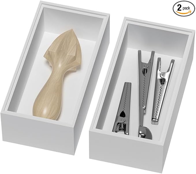 Bamboo Drawer Organizer, Small Silverware Organizer for Kitchen Drawer, Stackable Utensil Organizer, 2 Pcs Flatware Organizer Wooden Storage Box Tray (White, 6 X 3 X 2 Inch)