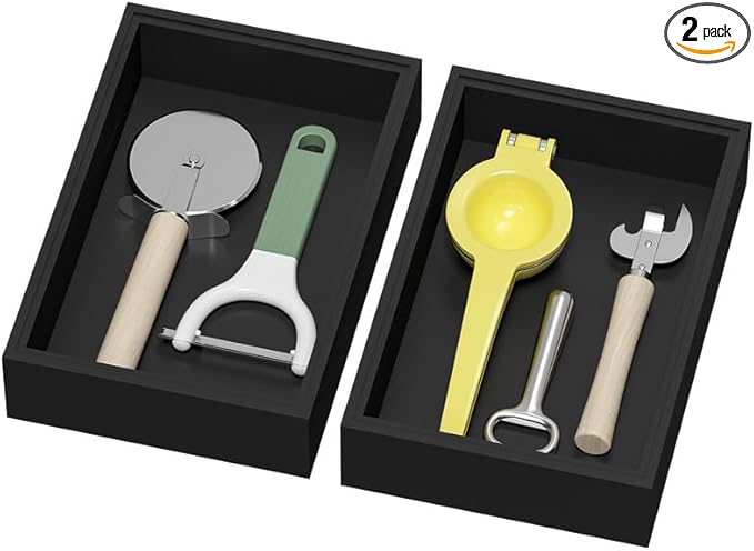 - Premium Bamboo Kitchen Drawer Organizer: Both 2 kitchen utensil organizer is made of sleek durable natural bamboo that is known to be stronger and beautiful than regular wood and to ensure durability and stability. Must have kitchen drawer organizer to organize silverware, utensil, cutlery and flatware like spoon. Or used on kitchen countertop to storage spice jars, sauces, bottles, etc.