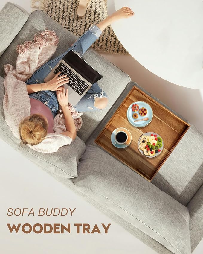 - Elegant Design & Versatile Functionality: Elevate your living space with our stylish Ottoman Tray. Measuring L20" x W20" x H2.2", this large wood tray is the perfect addition to any ottoman, coffee table, or sofa. Use it to serve breakfast, snacks, drinks, or as a decorative centerpiece.