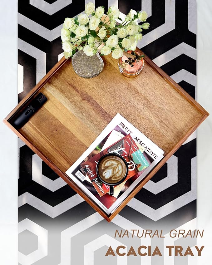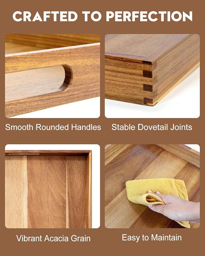 - Easy to Care For: Maintain the beauty of your Acacia wood tray with minimal effort. Simply wipe with a damp cloth to clean. For added longevity, occasionally treat the wood with a food-safe mineral oil to keep it looking pristine.