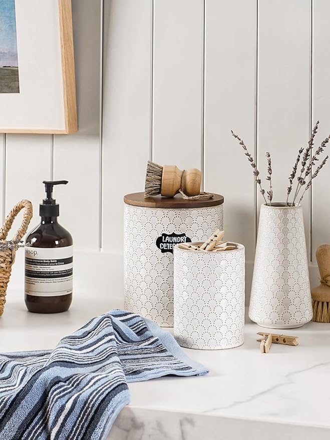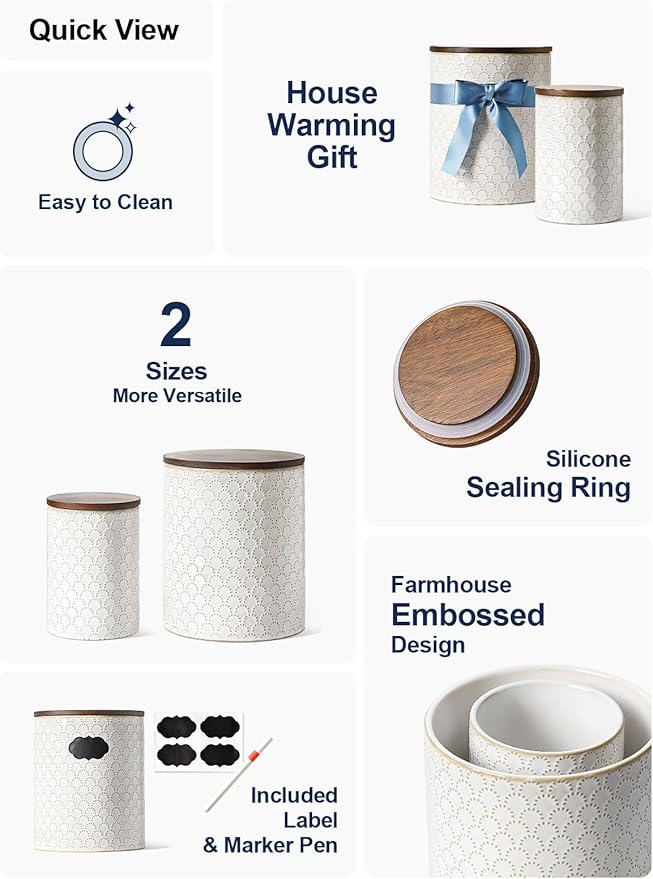 - Embossed Design: Featuring an arctic white glaze with a charming embossed pattern, these farmhouse-style ceramic jars will add warmth and vitality to your home. Their elegant design complements various home styles, making them the perfect addition to your countertop or coffee corner. Enhance your homeβs aesthetics and let these jars become a standout decorative element in your living space