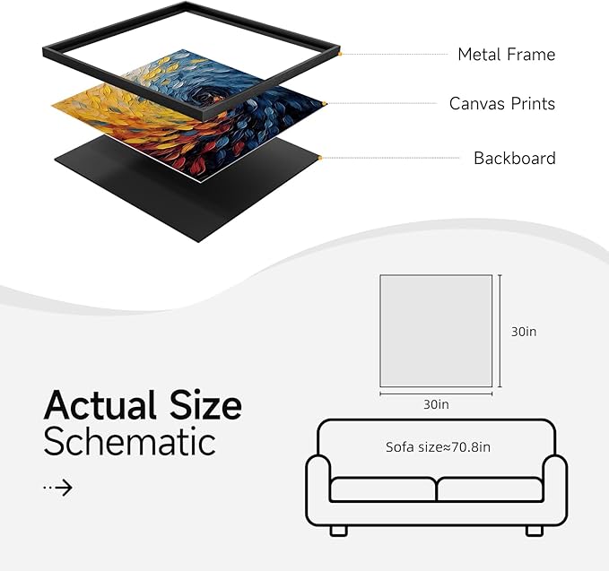 - [Framed Wall Art]: This large framed modern abstract wall art measures 30x30 inches. Each painting with a solid, rust-resistant, simple and stylish black frame that blends in perfectly with a variety of decor styles.