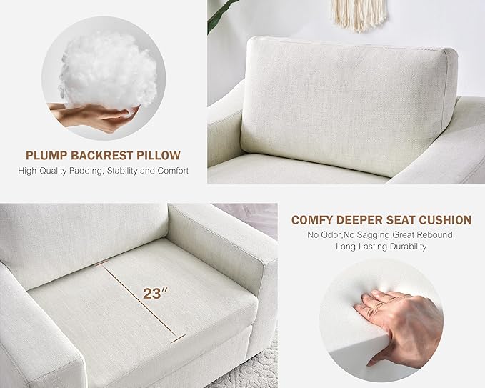 - HIGHER AND THICKENED SEAT - The seat height of the sofa is 18 inches, in comparison to similar products on the market, we have increased the height by approximately 25% in comparison to them.The seat cushion is 7 inches thick and made of high-quality foam with high-grade spring padding. It provides both support and a comfortable seating experience, with a medium firmness level (3 out of 5).