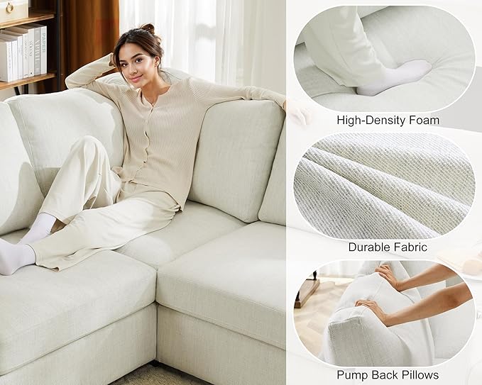 - DETACHABLE SOFA COVER - The sofa sectional combines style with practicality. The seat cushion covers and back pillow covers feature smooth zippers, making them removable and washable for effortless maintenance and ensuring long-lasting freshness.
