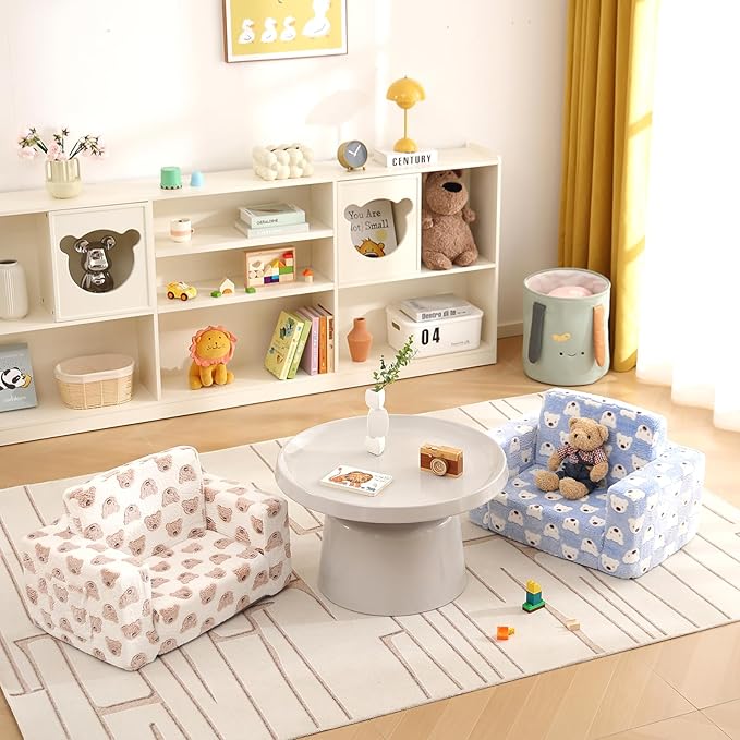 - 【Care Instruction】The 2-in-1 kids chair cover is detachable and washable in the machine. But you need to mark each foam before washing for easy re-installation. Thanks to the fabric is soft and resistant to fading, shrinking, the kid couch sofa stays the same as the new one after washing. The foam kids couch will be an attractive sofa!
