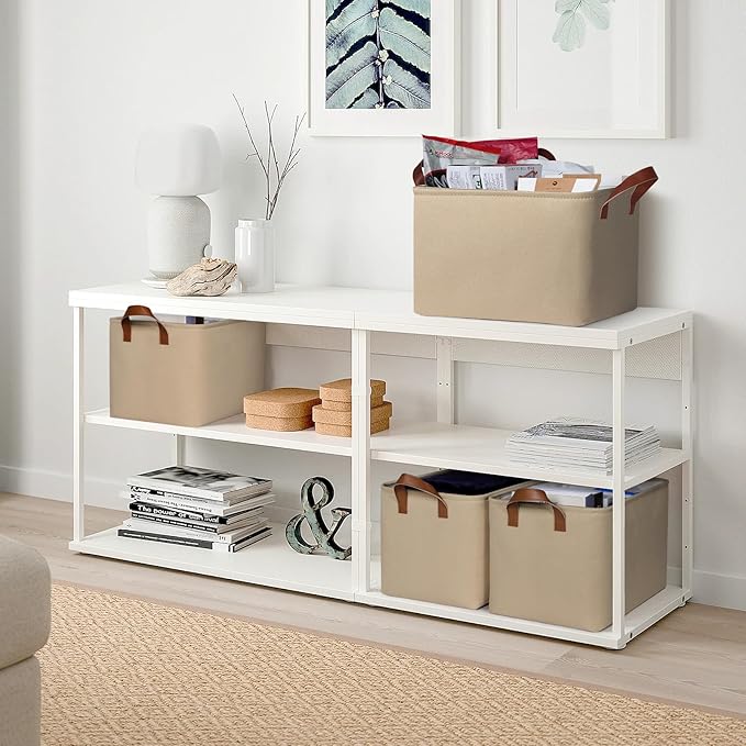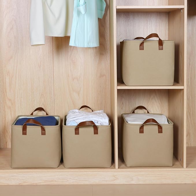 - 【Versatility】These storage boxes for organizing pretty for living room, bedroom, closet, cabinets, dorms, bathrooms, utility room, office even in the hallway. In the bathroom, fabric baskets for storage can hold towels, toiletries, and grooming essentials. In the bedroom, these closet organizers and storage bins become a wardrobe extension, offering ample space for clothes, blankets to improve room neatness.