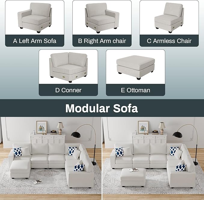 - 【Flexible Combination】The u shaped couch can rearrange the seats, you can adjust it as you like to create various shapes and layouts, whether it's combined into an L shaped sofa or a U shaped sofa, this sofa couch can fit your space perfectly. This flexibility not only brings more choices, but also saves your budget, by adding additional modules, you can easily expand the capacity and functionality of the sofa without having to replace the modular sofa completely.