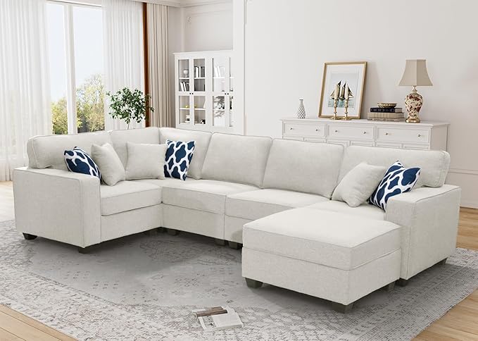 - 【Ergonomic Design】The backrest of the couches for living room perfectly fits the human body curve, the armrests are wide and at the right height, and the living room sofa as a whole is ergonomically designed to give you comfortable support. The modular sectional sofa is paired with multiple multi-functional small pillows, allowing you to relax anytime, anywhere. The oversized couch has a weight capacity of up to 660 pounds to give you stable support.