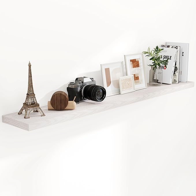 - 【FARMHOUSE RUSTIC WALL SHELF】These floating shelves are made of premium engineered wood board and invisible one-piece bracket. The rustic wooden grain surface add character and warmth to any modern or traditional interior with these thick floating shelves, contrast shelves at staggering heights on the wall or mount side-by-side or in the corner for a clean streamlined look.