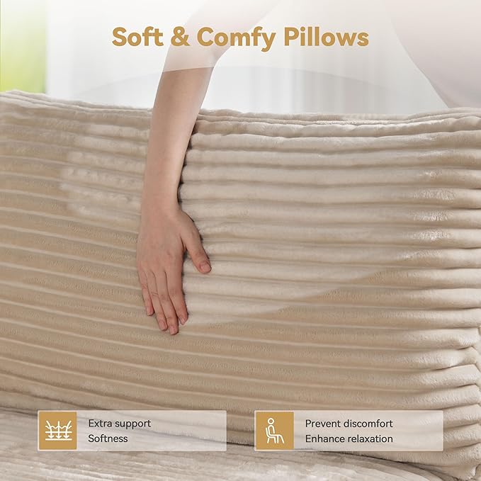 - Superior Comfort:Upholstered in high-end breathable plush corduroy fabric and high rebound sponge, with cushioned thick foam at the backrest and seat for prime relaxation. Lean back and stretch out your legs long on the ottomans when you or your guests need more space. Customize the placement of the pillows anywhere you would like to add extra support when sitting after a long day or watching a movie.