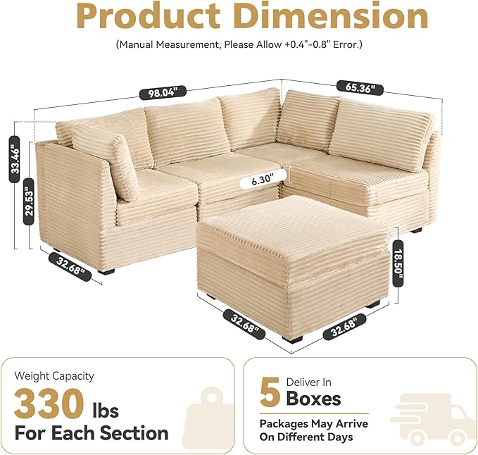 - Special Feature : DIY, Deep Seat, Modular, Plush Corduroy, Sectional