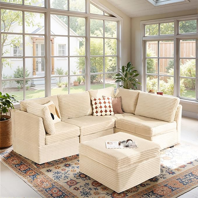 - Spacious Furniture:Sturdy solid wood frame, high-end breathable Plush corduroy fabric, filled with high rebound sponge, making this modular sectional sofa beautiful and comfortable, it can be a perfect match for your living room, bedroom, home office, etc.