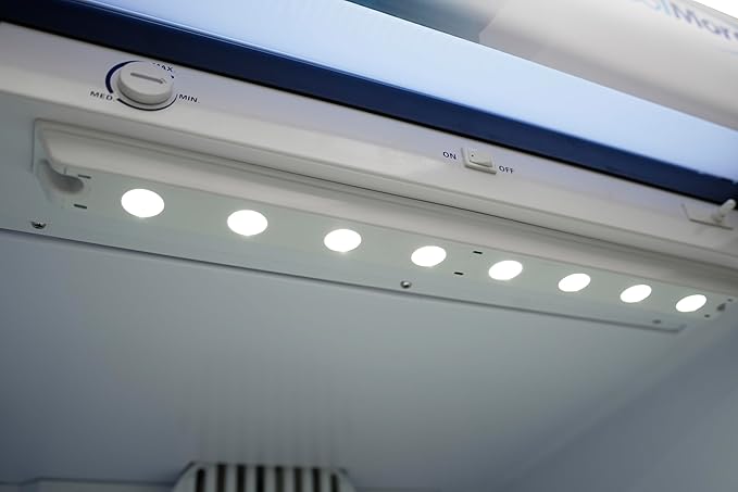 - LED Lighting: Equipped with bright, energy-efficient LED lights located at the top, this refrigerator ensures excellent product visibility, enhancing the display of your items.
