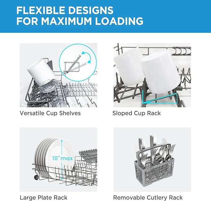 - 6+2 Washing Cycles- Most of the cleaning cycles, including Auto, Heavy, Normal, Quick, Rinse and Delicate, helped with extra-drying function and power wash, and deliver sparklingly cleaned and dried dishes. And Rinse, are designed for Midea compact dishwasher, providing high flexibility for you to choose in different situations.