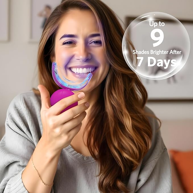 - 9 shades whiter in 7 days: Enjoy professional-level teeth whitening in the comfort of your home! Our kit is designed to provide visible results in just 7 days. Use it for 16 minutes per day to quickly and effectively whiten your teeth without the need for expensive dental visits