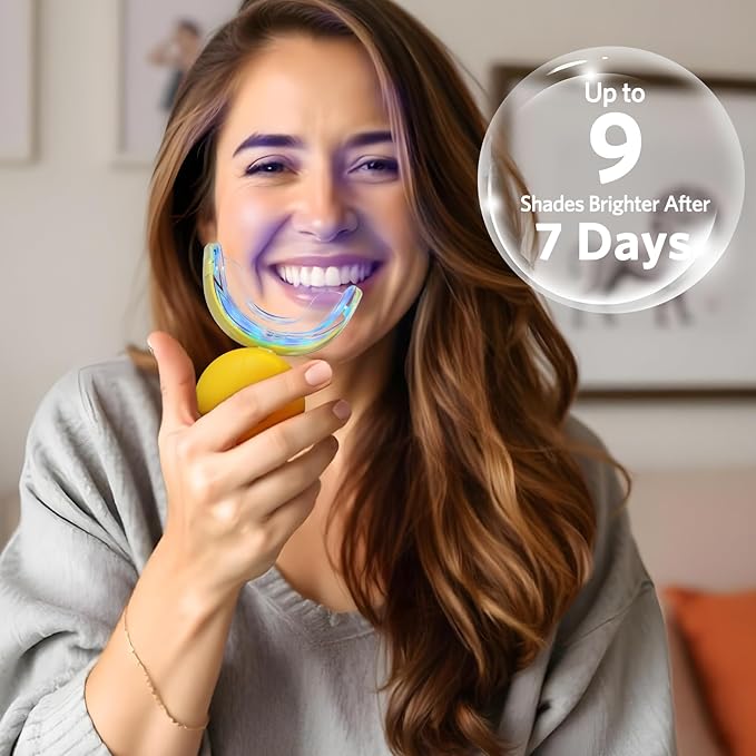 - 9 Shades Whiter in 7 Days: Enjoy professional-level teeth whitening in the comfort of your home! Our kit is designed to provide visible results in just 7 days. Use it for 16 minutes per day to quickly and effectively whiten your teeth without the need for expensive dental visits