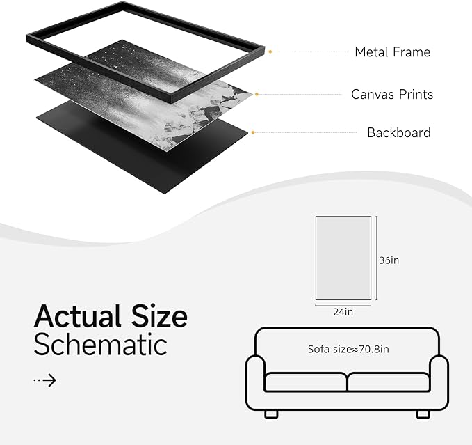 - [Framed Wall Art]: A large framed black and white abstract canvas wall art, size is 24x36 inches. Each painting with a sturdy, rust-resistant frame