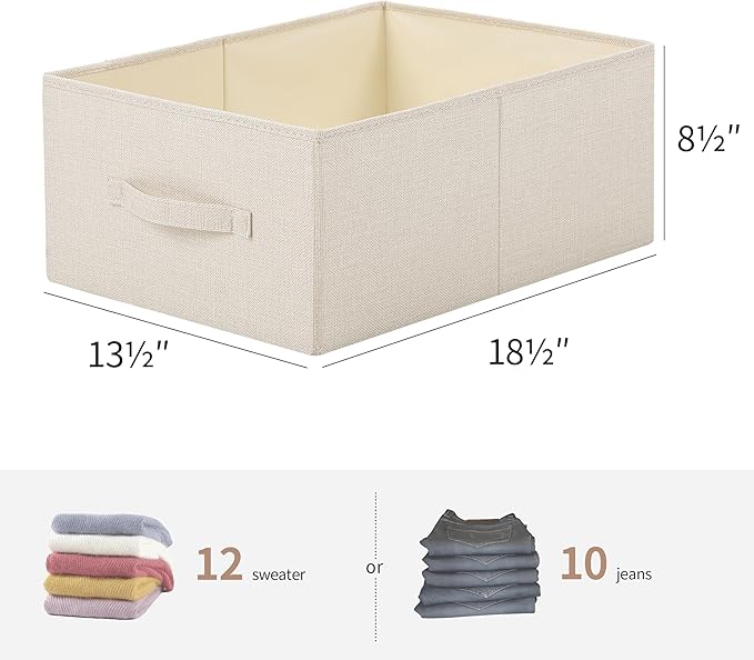 Linen Folding Storage Bins, 3 Pack Large Storage Baskets, Washable, Clothing Storage Bins with Handle, Closet Organizer for Storage Sweater,Sheets(Beige, 18½"x13½"x8½")