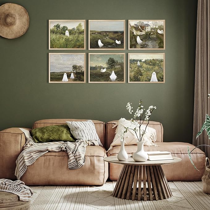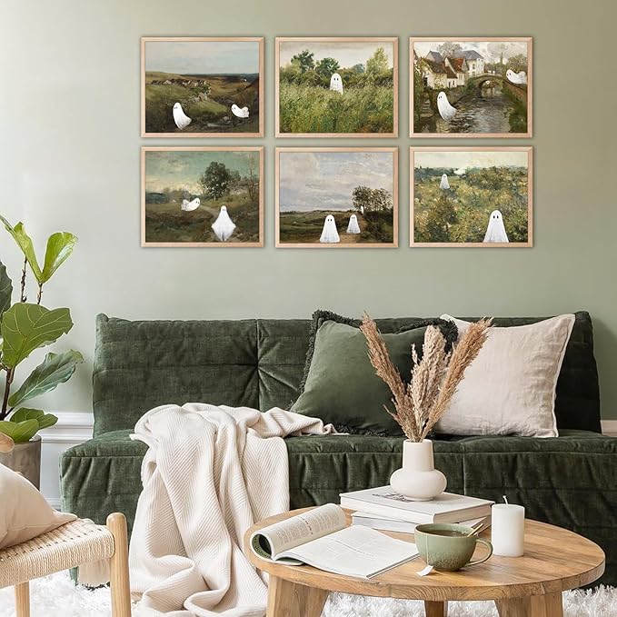 - Ghost Decor: Explore our captivating "Ghost Wall Art" collection of 6 Pcs 8x10-inch. These eerily stunning works of art embrace the aesthetics of dark academia, lending an air of mystery and elegance to your space.