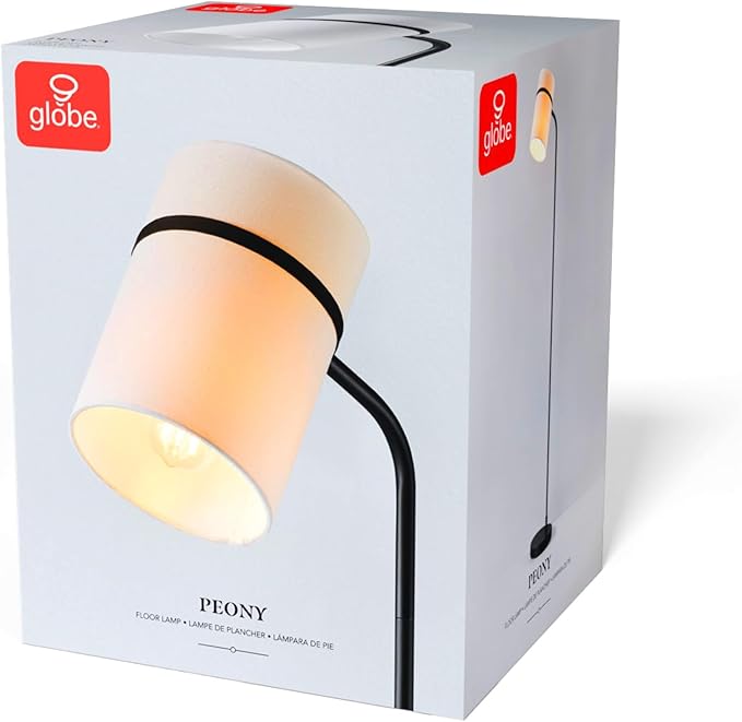 GLOBE Electric 61000145 62" Floor Lamp, Matte Black, White Fabric Shade, in-Line of/Off Foot Switch, 6-Foot Black Cord, Reading Light, Bedroom, Living Room, Home Decor