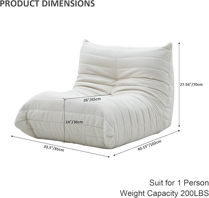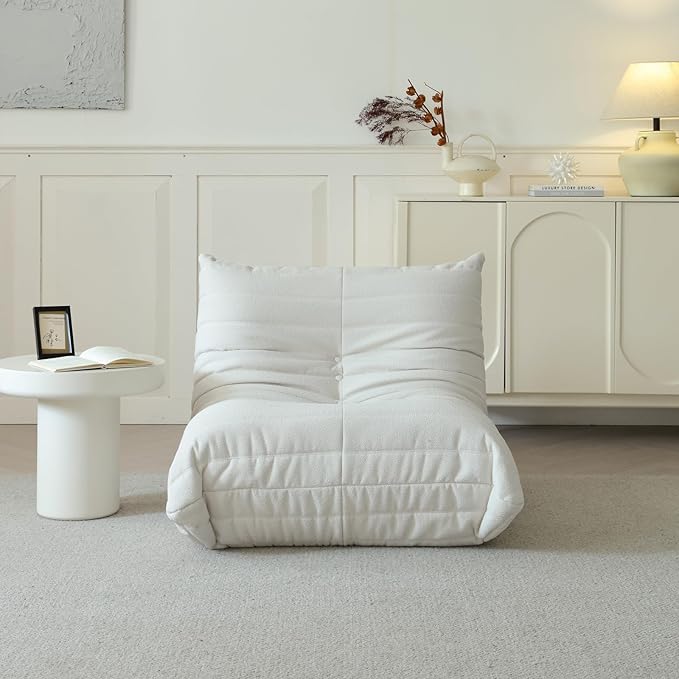 Luxury Sofa Couch Chair, Lazy Floor Seating, Fireside Bean Bag Chair, Ergonomic Tatami Sofa Lounger for Living Room, Bedroom, Office, Single Seat, White