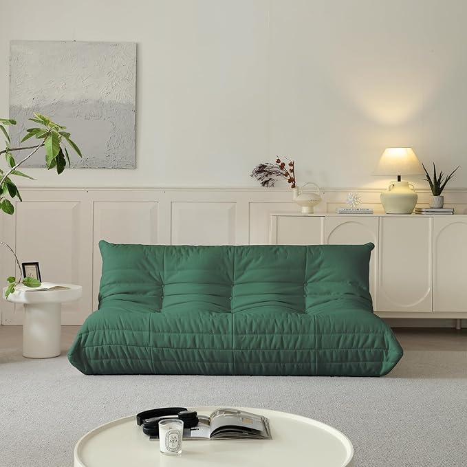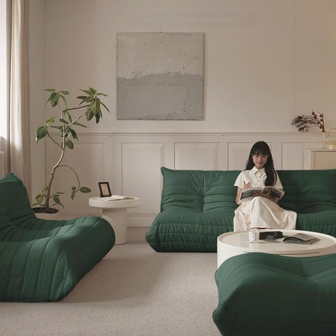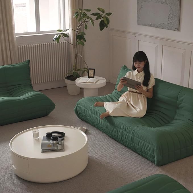 Luxury Sofa Couch Chair, Lazy Floor Seating, Fireside Bean Bag Chair, Ergonomic Tatami Sofa Lounger for Living Room, Bedroom, Office, 3 Seat, Green