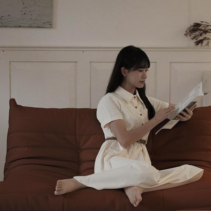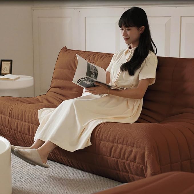 Luxury Sofa Couch Chair, Lazy Floor Seating, Fireside Bean Bag Chair, Ergonomic Tatami Sofa Lounger for Living Room, Bedroom, Office, Loveseat, Brown