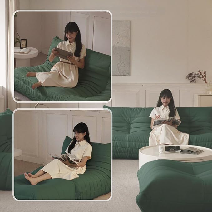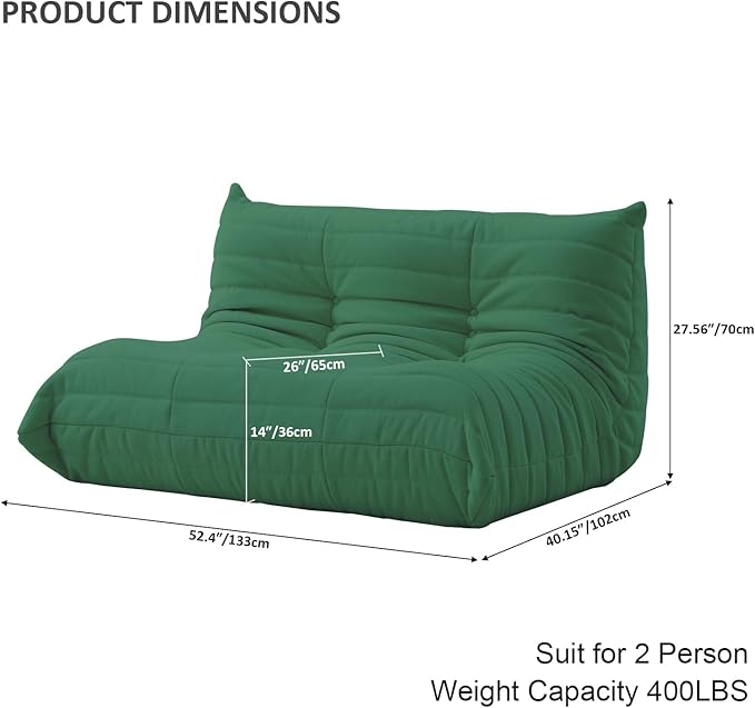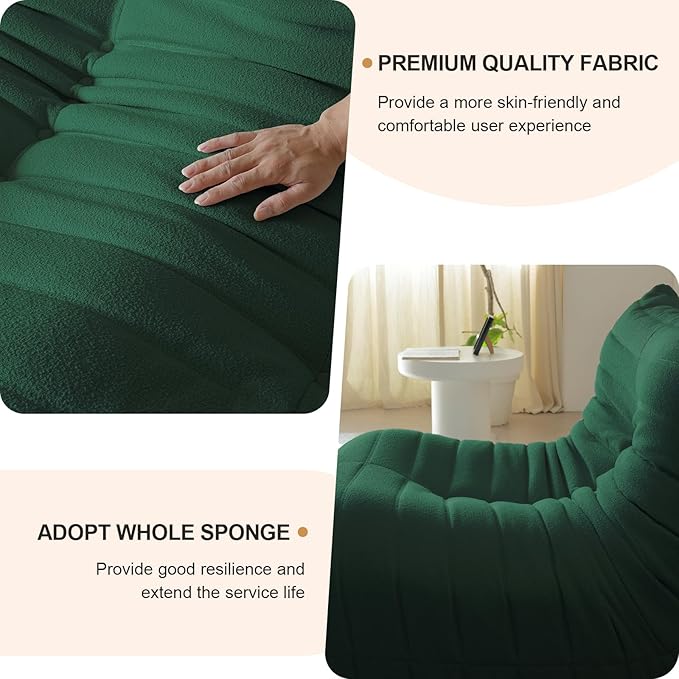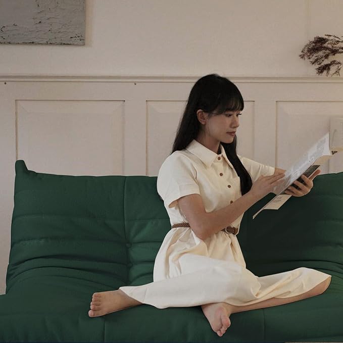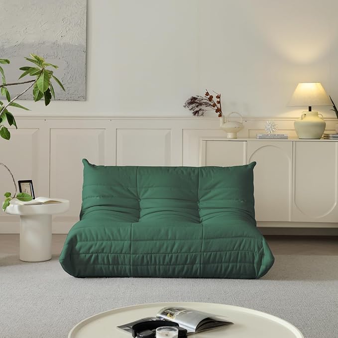 Luxury Sofa Couch Chair, Lazy Floor Seating, Fireside Bean Bag Chair, Ergonomic Tatami Sofa Lounger for Living Room, Bedroom, Office, Loveseat, Green