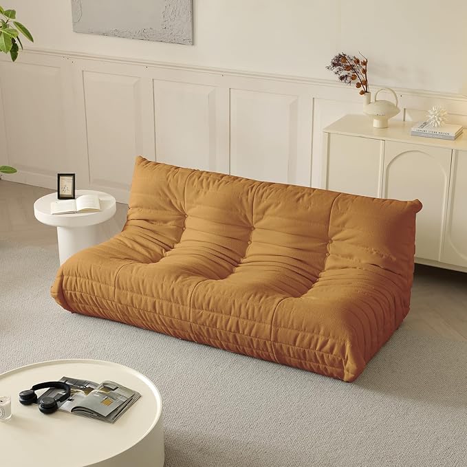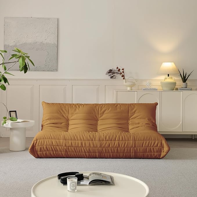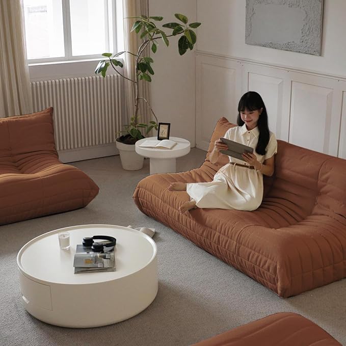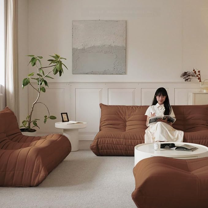 Luxury Sofa Couch Chair, Lazy Floor Seating, Fireside Bean Bag Chair, Ergonomic Tatami Sofa Lounger for Living Room, Bedroom, Office, 3 Seat, Brown