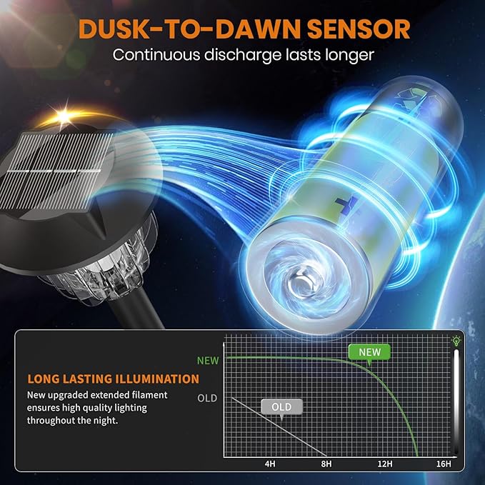 - DURABLE SOLAR OUTDOOR LIGHTS: Our upgraded solar lights outdoor draw inspiration from the cosmos, boasting a unique and durable construction. The sleek and modern design effortlessly complements the surrounding landscape, creating a lovely ambiance. Bringing a touch of magic to your garden and creates a warm and inviting atmosphere. Nice yard lighting.
