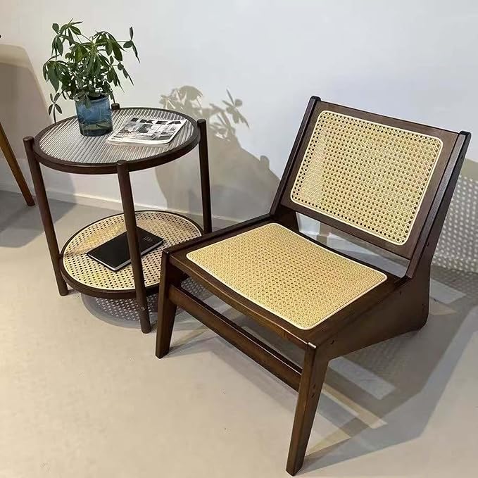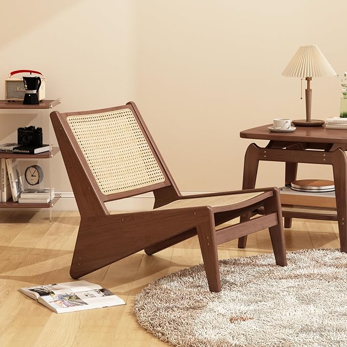 Mid-Century Accent Chair, Rattan Lounge Chair for Living Room, Boho Side Corner Comfy Chair for Bedroom and Balcony, Walnut