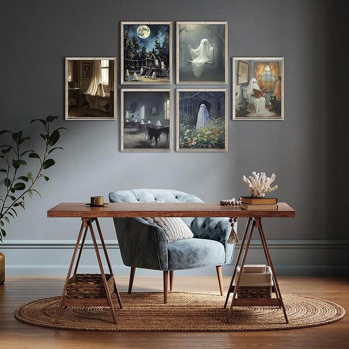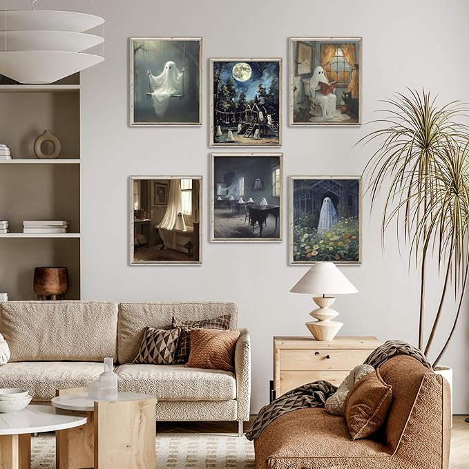 - Ghost Decor: LANCHI95 room decoration paintings are made of high-quality 300gsm paper with a matte layer on the surface, making the wall posters resistant to water and dust. The colors of the painting are perfect and sharp. Explore our captivating "Ghost Wall Art" collection of 6 Pcs 8x10-inch. These eerily stunning works of art embrace the aesthetics of dark academia, lending an air of mystery and elegance to your space.