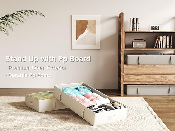- High Quality Materials - Made of sturdy composite Linen fabric, the storage bins under the bed can hold bulky books and toys without falling apart. Durable handles and dual zippers make it easy to use in daily life. Transparent top cover helps find the items quckly