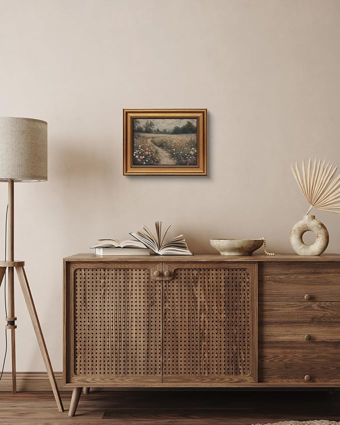 HUARCEY Gold Framed Vintage Wall Art for Living Room, Flowers Painting Prints Shelf Decor for Kitchen, Landscape Bedroom Wall Art, Christmas Gifts for Friends or Family (Flowers Path - 8"x10")