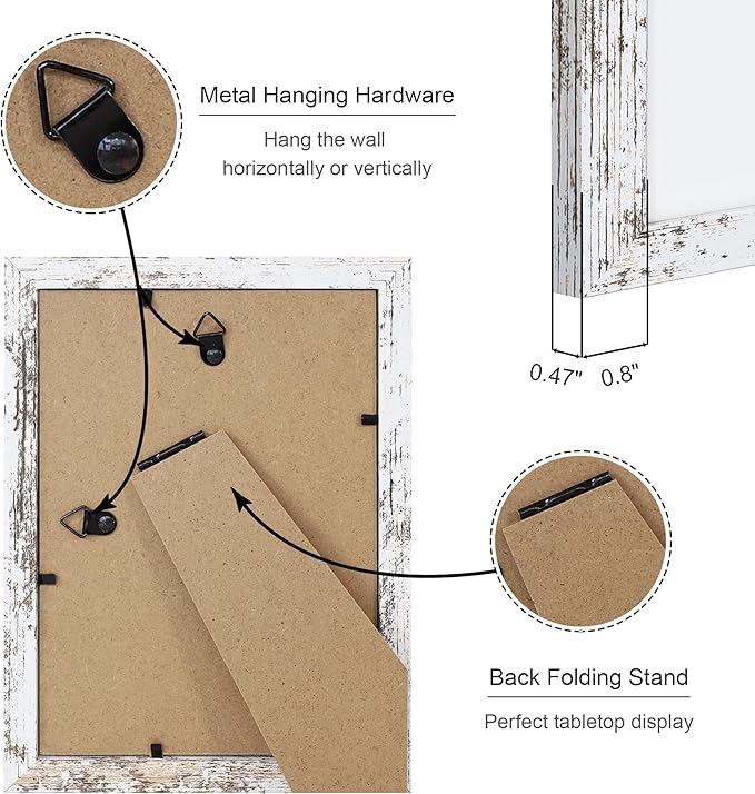 - Multiple Display:5 by 7 photo frames come with hanging hardware, which can be hung horizontally or vertically on the wall, or displayed on the tabletop through the stand