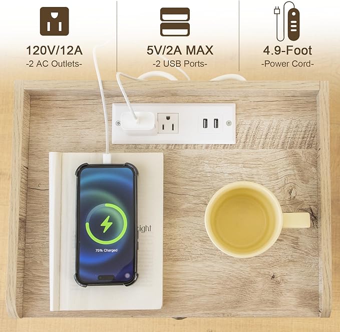- Multifunctional Nightstand: This modern nightstand with the charging station is equipped with 2 USB Ports and 2×3-Prong Power Outlets that can meet your needs to charge phones, iPads, laptops, and desk lamps easily. The 4.9-foot-long electrical cord makes phones, and ipads when charging that also is within your arm’s reach