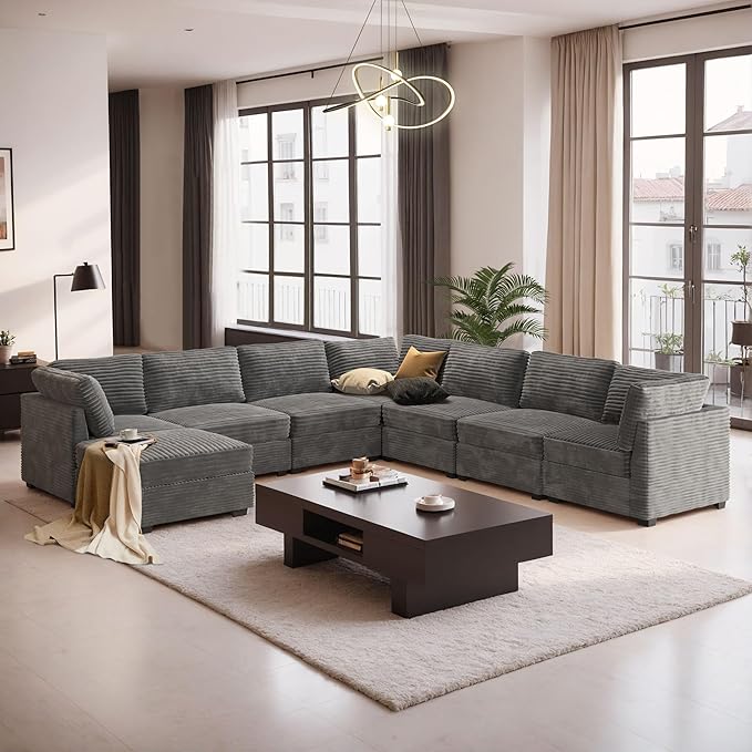 - Spacious Furniture:Sturdy solid wood frame, high-end breathable Plush corduroy fabric, filled with high rebound sponge, making this modular sectional sofa beautiful and comfortable, it can be a perfect match for your living room, bedroom, home office, etc.