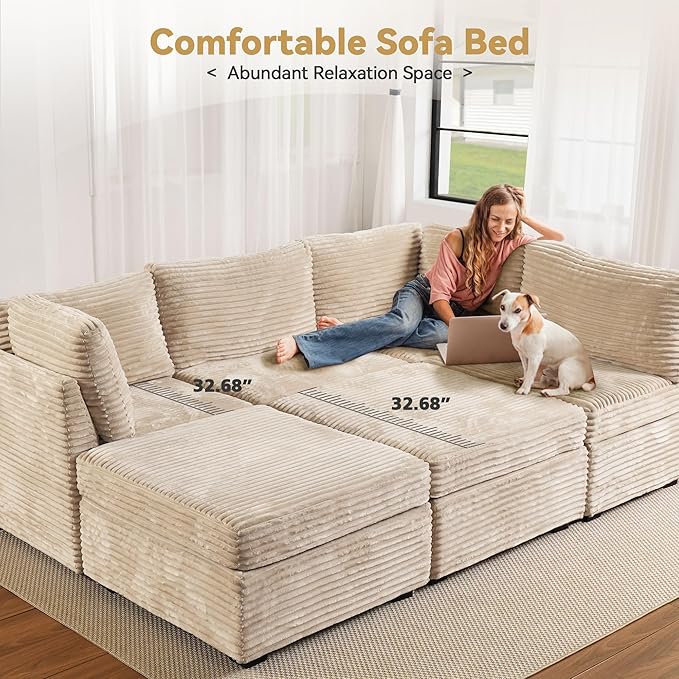 - Spacious Furniture:Sturdy solid wood frame, high-end breathable Plush corduroy fabric, filled with high rebound sponge, making this modular sectional sofa beautiful and comfortable, it can be a perfect match for your living room, bedroom, home office, etc.