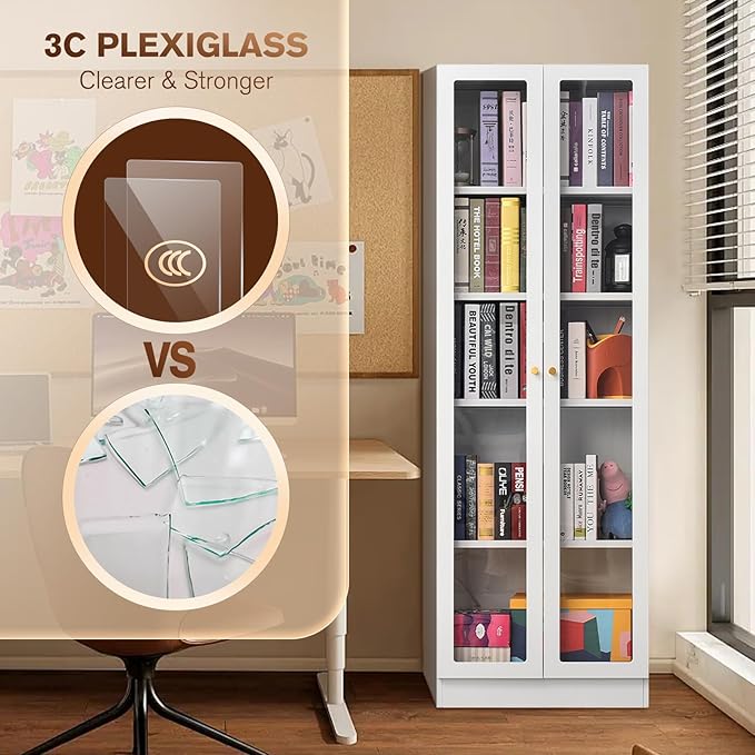 - Recommended Uses For Product : Bookcase with doors and shelves, Bookshelf with doors and shelves, Curio storage cabinet with doors and shelves, Display cabinet with Acrylic doors for collectibles, Display case with doors and shelves, Display cases for collectibles, Kitchen panty cabinet with Acrylic doors, Kitchen storage cabinet with doors and shelves, Living room storage cabinet, Metal Garage storage cabinet for tools, Tall bookcase with Acrylic doors Bookcase with doors and shelves, Bookshelf with doors and shelves, Curio storage cabinet with doors and shelves, Display cabinet with Acrylic doors for collectibles, Display c… See more