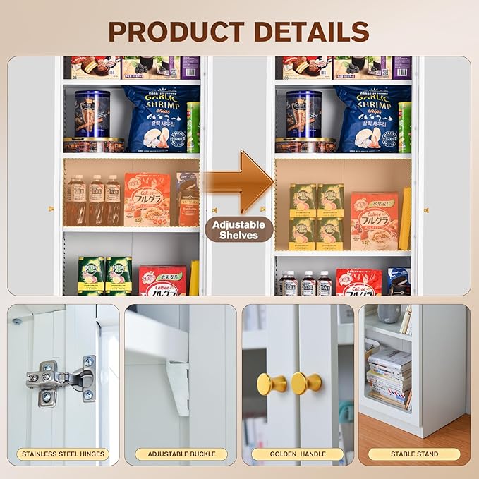 - Multifunctional Design Storage Cabinet: Each door with rubber buffers, reduces the noise when closing the door, and avoid the door from scratches. The back of the metal cabinet is equipped with two mounting holes for easy fixation to the wall to prevent tipping over,and providing added security for your home. The waist and bottom of the back panel have reinforcement ribs, further increasing the strength of the cabinet. The opening and closing device of the door is a silent shock absorbing cushion hinge. Can also be used to adjust the door spacing and the distance between the door and the cabinet.