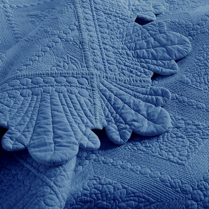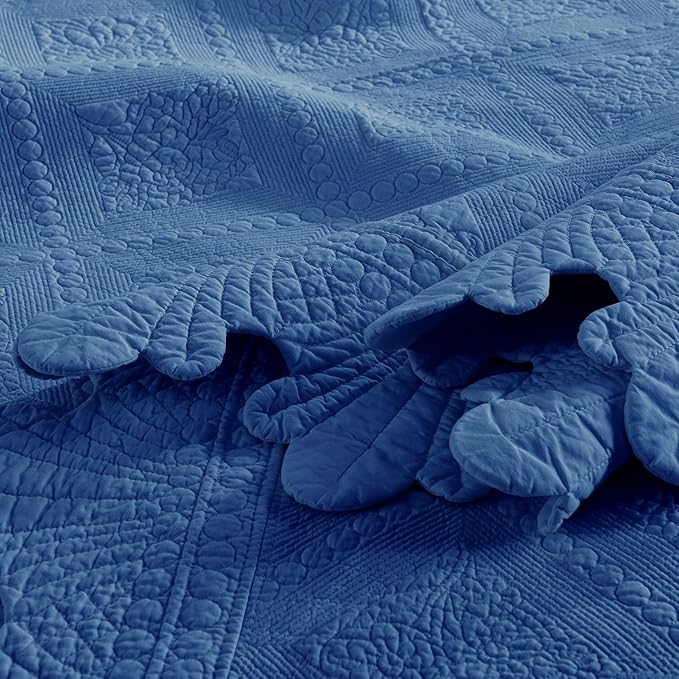 MarCielo 3-Piece 100% Cotton Oversized Bedspread Lightweight Quilt Coverlet Embroidery Farmhouse Bedding Set (Tk Midtone Blue, Oversized Queen (100"x106"))