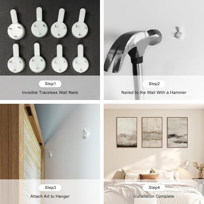 - 【Easy to Hang】24"x36"frame set is easy to hang, ready to use, with metal hooks and non-marking nails. It takes only 5 minutes to finish hanging.