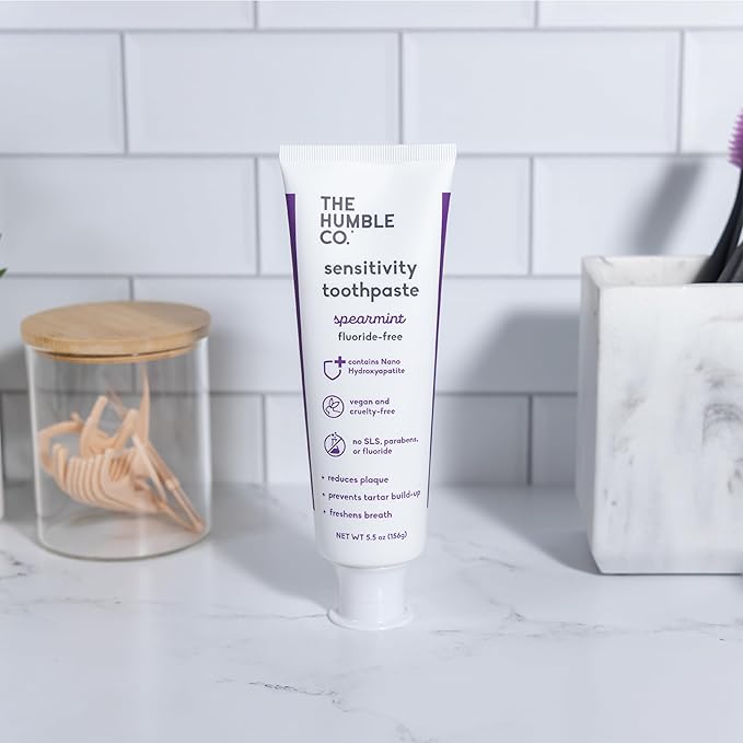 The Humble Co. Sensitive Toothpaste – Natural Spearmint Fluoride Free Toothpaste for Fresh Breath and Helps Remove Plaque, Vegan Cruelty Free Oral Care, Non-Toxic SLS Free Toothpaste (5.5 oz, 2pk)