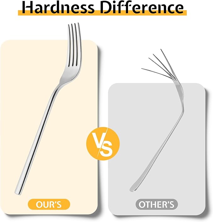 - DESIGN AND APPEARANCE: Mirror finish, natural and elegant design.Smooth and silk surface without grain, easy to clean and care in daily use. Crafted forged process,strong and durable,so that the flatware set has a thicker texture