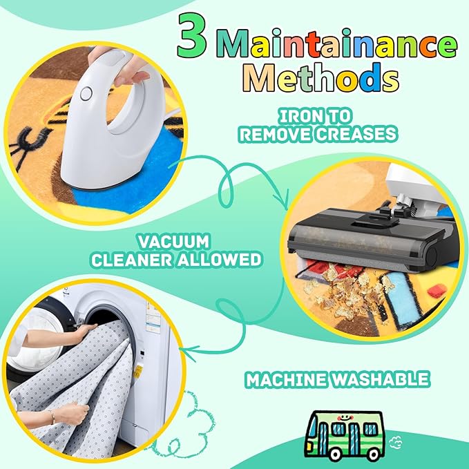 - [About Creases & Thickness]: Due to vacuum package, the road map rugs for kids may feel thinner and have wrinkles after right unpacking. Please don't worry, it will take 3 to 7 days for the kids rug to regain its original shape. You could also use a steam iron to smooth out creases caused by shipping folds.
